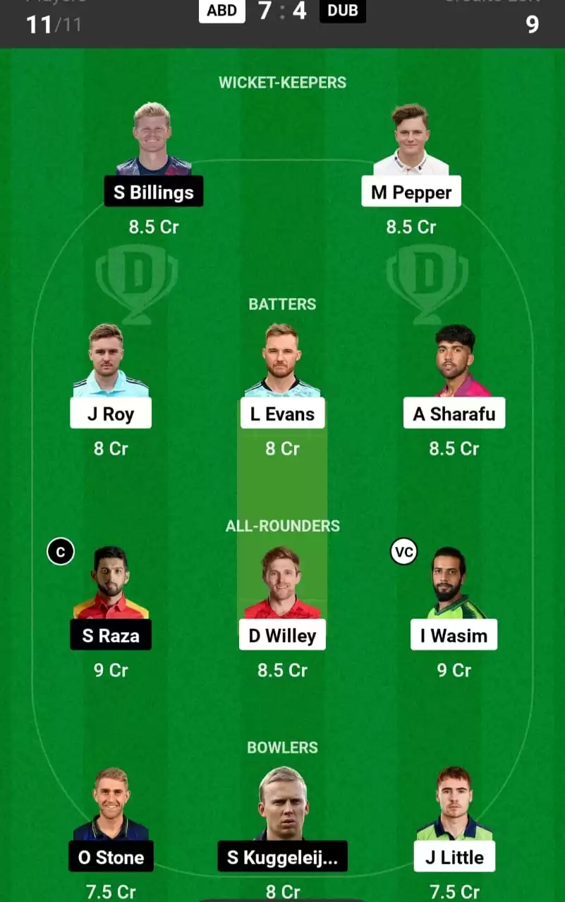 ABD vs DUB Fantasy Expert Cricket Team: UAE T20 League 2024