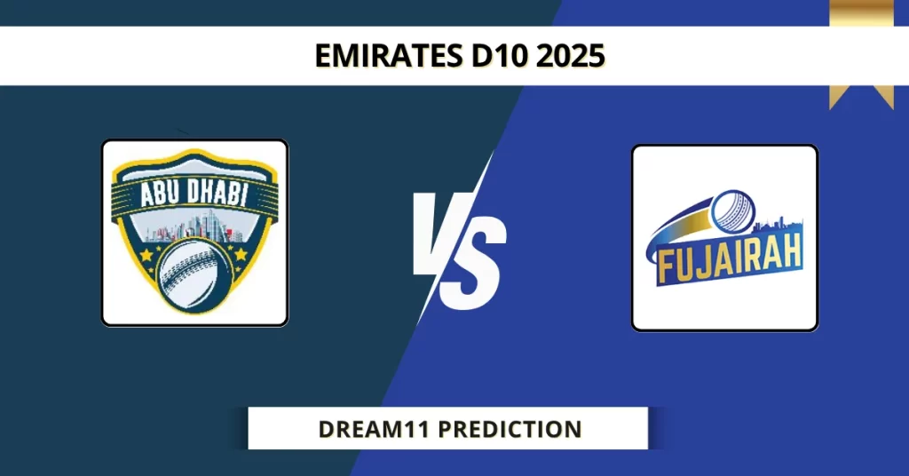 ABD vs FUJ Dream11 prediction – Get ready for an exciting clash as Abu Dhabi (ABD) takes on Fujairah (FUJ) in Match 33 of the Emirates D10 Tournament 2025. The match is scheduled to take place at Sharjah Cricket Stadium on May 28, 2025, at 4:00 PM IST.