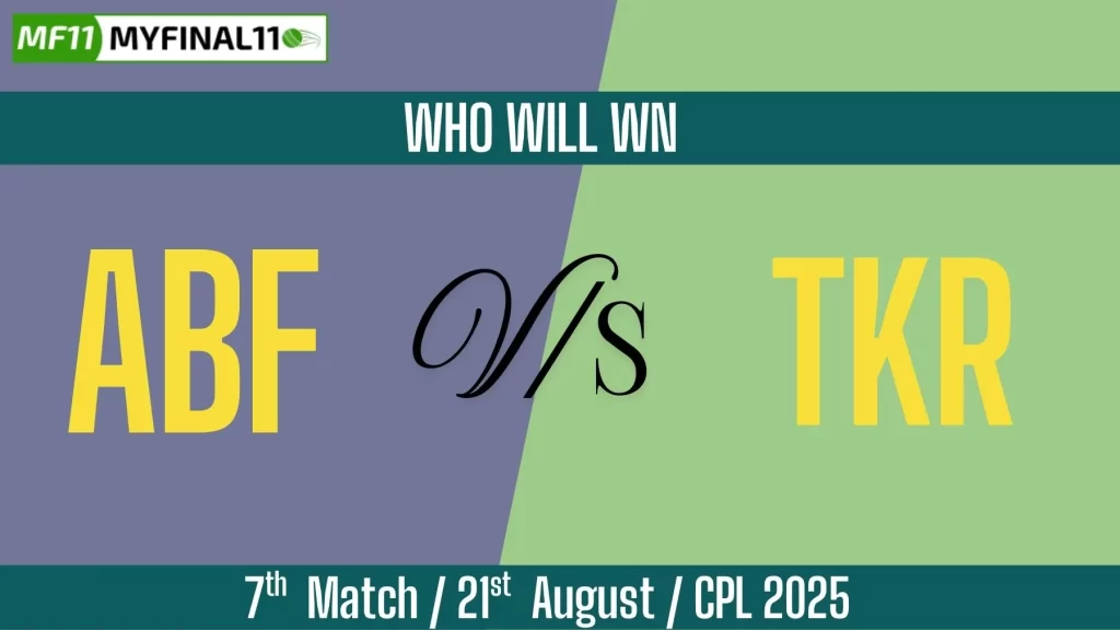 ABF vs TKR Who will win today? Antigua and Barbuda Falcons (ABF) and Trinbago Knight Riders (TKR) will compete in the 7th match of the Caribbean Premier League 2025.