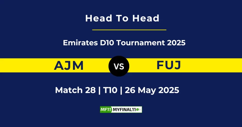 AJM vs FUJ Player Battle, Head-to-Head Team Stats & Records and more: Today in Emirates D10 Tournament (2025), Ajman (AJM) will take on Fujairah (FUJ) at Sharjah Cricket Stadium, Sharjah, on 26th May 2025 at 11:30 PM.