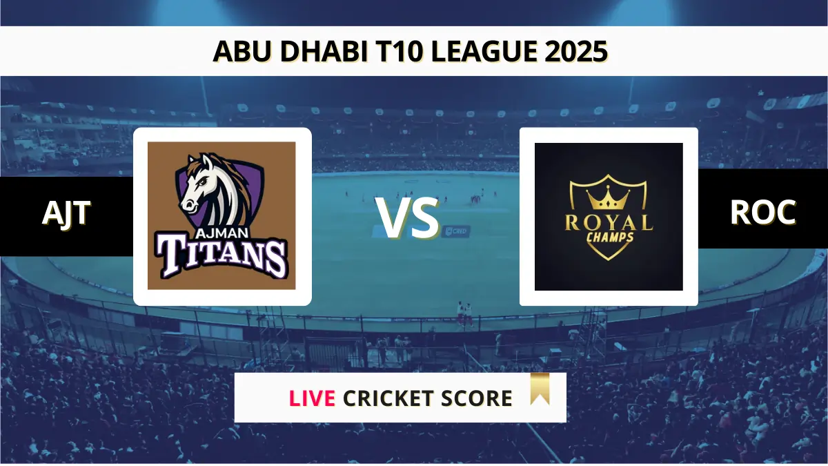 Get Live Score update of AJT vs ROC: Catch the excitement of the Abu Dhabi T10 League 2025 as AJT faces off against ROC in Match 15. Get live score updates, match stats, and commentary straight from Sheikh Zayed Stadium on November 23, 2025, at 5:00 PM IST.