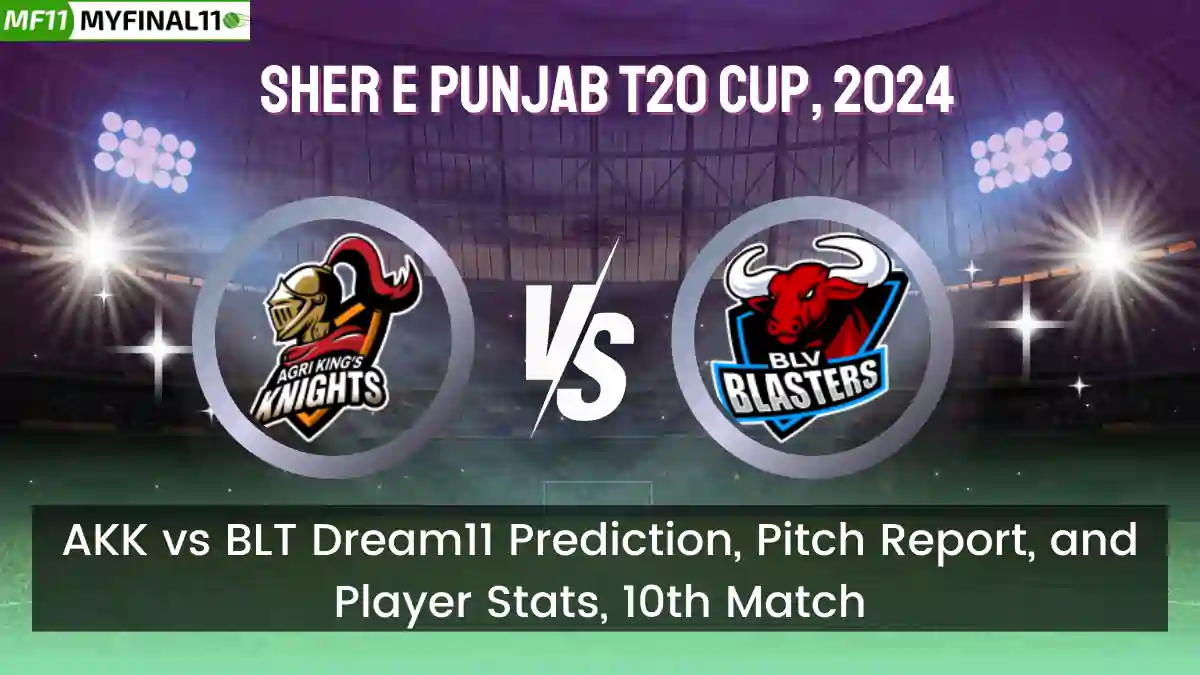 The 10th match of the Sher E Punjab T20 Cup 2024 will be between Agri Kings Knights (AKK ) and BLV Blasters (BLT ) at Punjab Cricket Association IS Bindra Stadium, Mohali, Chandigarh on 14 June 2024 at 07:15 PM. If you are interested, you can find more information about the AKK vs BLT Dream11 Prediction Today Match, AKK vs BLT Dream11 Team Today, Playing 11, Pitch Report, and AKK vs BLT Player Stats in this article.