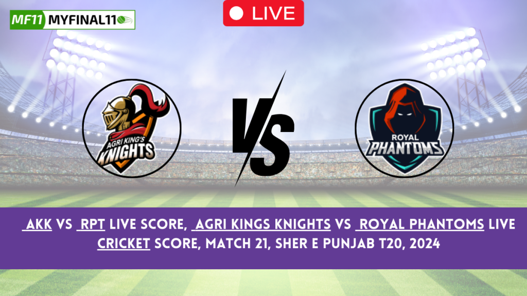 Today’s Sher E Punjab T20 Cup match will be played between Agri Kings Knights (AKK) and Royal Phantoms (RPT). The AKK vs RPT Live match will be held on June 20, 2024, at Punjab Cricket Association IS Bindra Stadium, Mohali, Chandigarh. It will start at 3:00 PM IST. Cricket fans can follow the AKK vs RPT live cricket score, scorecard, and ball-by-ball match commentary on myfinal11. Live streaming for this match is available on the Fancode app/website.