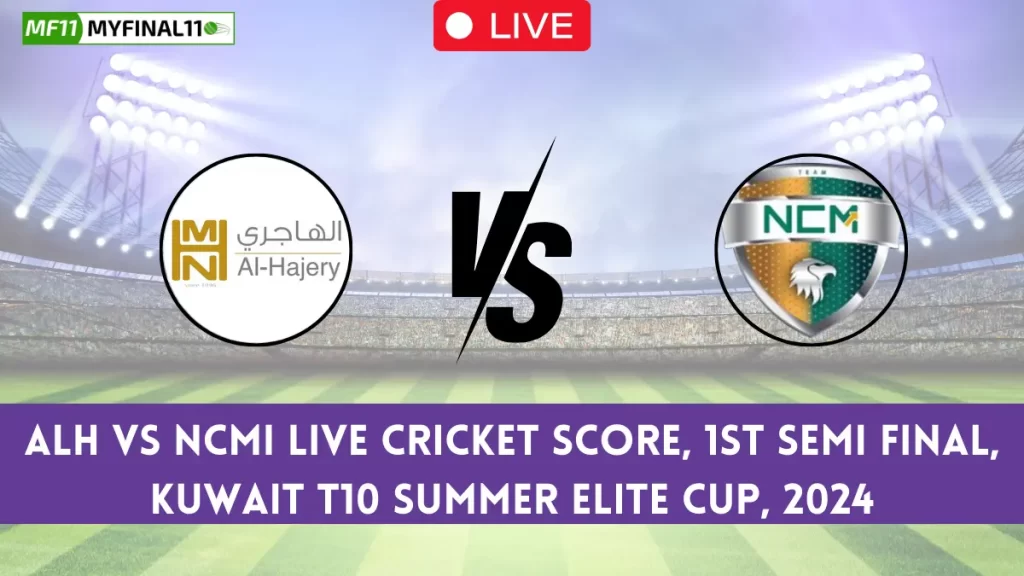 ALH vs NCMI Live Cricket Score — The Al Hajery Team Xl (ALH) vs NCM Investments (NCMI) 1st Semi Final in the Kuwait T10 Summer Elite Cup is set for August 13, 2024 10:30 PM IST, at Sulaibiya Cricket Ground.