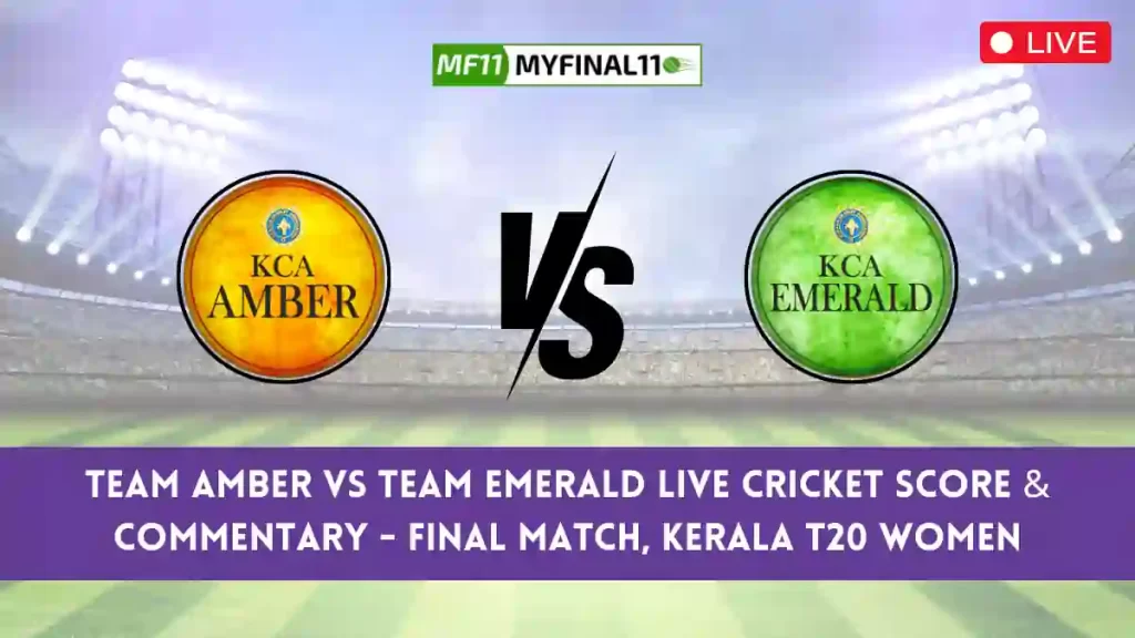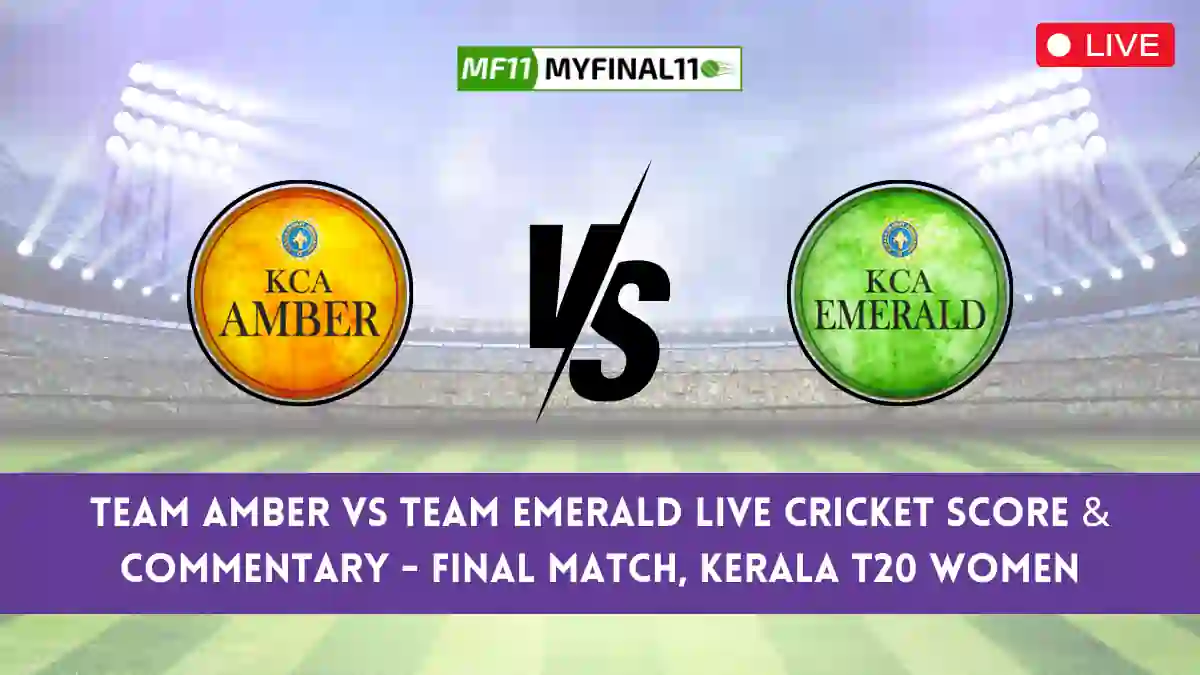 Get live score updates for the AMB vs EME match as Team Amber takes on Team Emerald in the Final match of the Kerala T20 Women 2024. Follow the live score and ball-by-ball commentary here. The match will begin on June 5, 2024, at 09:00 AM IST and will be hosted at St. Xavier’s College Ground, Thiruvananthapuram. Live Streaming of this match is available on the Fancode, and for AMB vs EME Live Cricket scorecard ball-by-ball commentary, Visit Here.