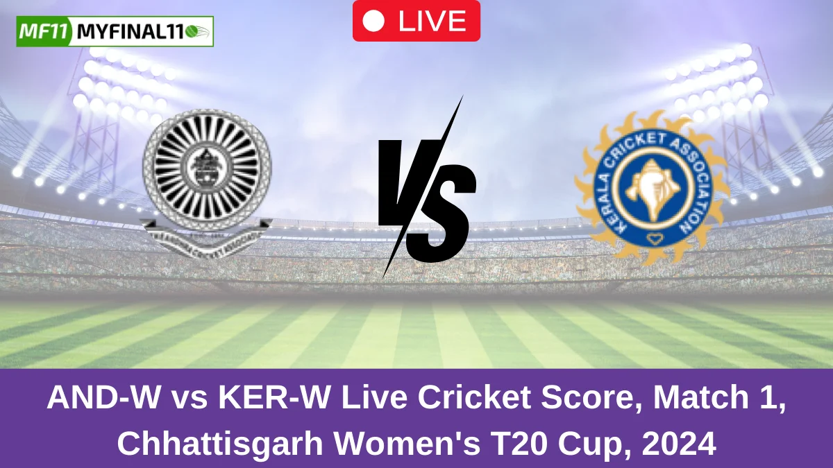 Cricket fans can follow the live cricket score, scorecard, and ball-by-ball match commentary on MyFinal11. Live streaming for the AND-W vs KER-W match is available on the Fancode app/website.