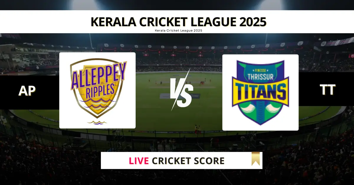AP vs TT Live Score: Follow the real-time updates and ball-by-ball coverage of The Match 3 in the Kerala Cricket League 2025. The match is being played at Greenfield International Stadium on August 22, 2025 2:30 PM IST.