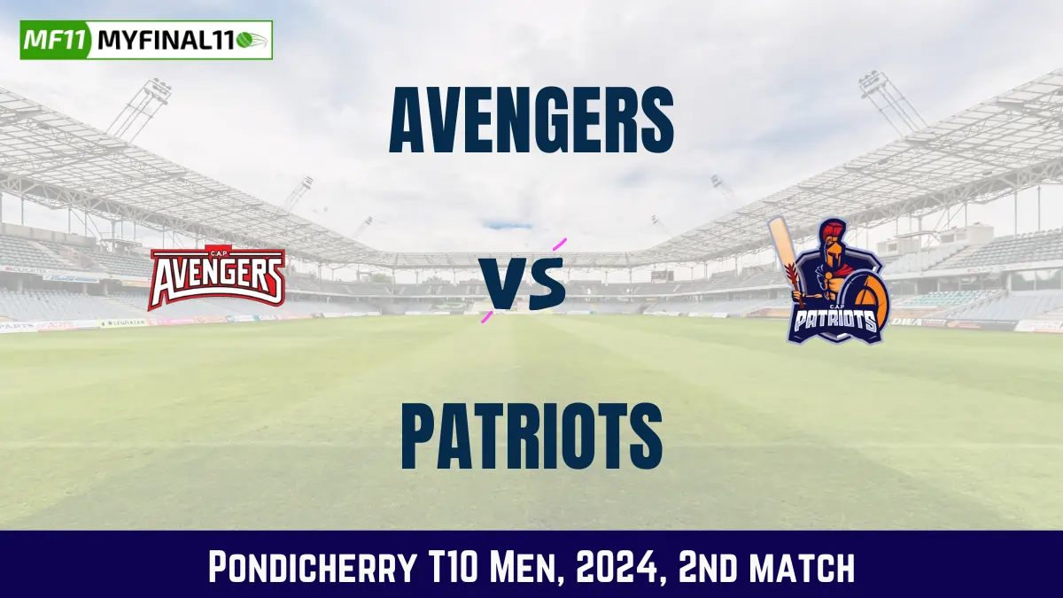 The 2nd match of the Pondicherry T10 Men 2024 will be between Avengers (AVE) and Patriots (PAT) at Cricket Association Puducherry Ground 4, Puducherry on 13th June 2024 at 11:30 AM IST. If you are interested, you can find more information about the AVE vs PAT Dream11 Prediction Today Match, AVE vs PAT Dream11 Team Today, Playing 11, and Pitch Report & AVE vs PAT Player Stats in this article.