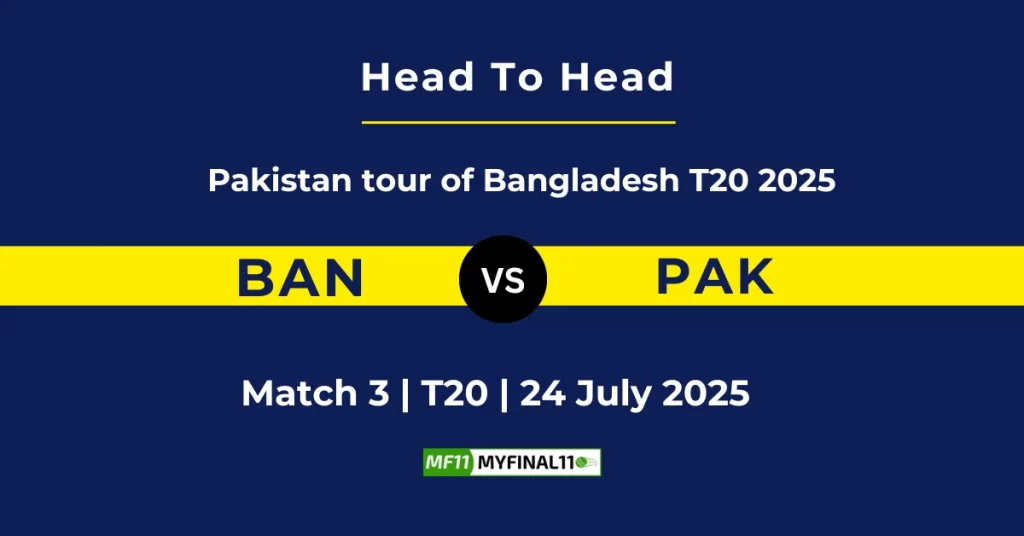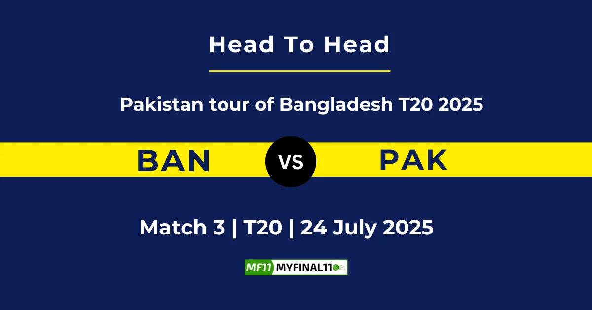 BAN vs PAK Player Battle, Head-to-Head Team Stats & Records and more: Today in the Pakistan tour of Bangladesh (2025), Bangladesh (BAN) will take on Pakistan (PAK) at Shere Bangla National Stadium, Mirpur, Dhaka, on 24th July 2025 at 5:30 PM.