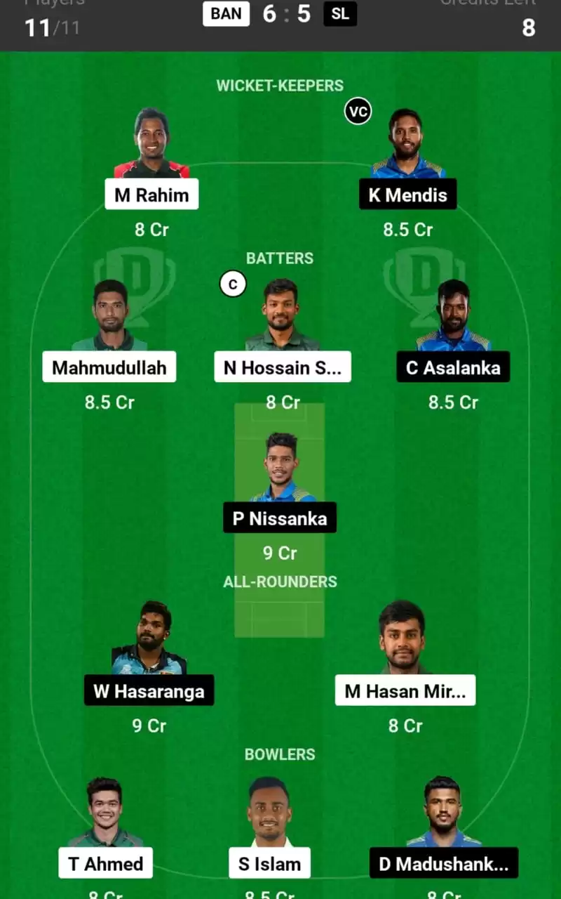 Najmul Hossain Shanto and Kusal Mendis will be the top hot picks for Captain and Vice Captain selection for your dream11 fantasy team