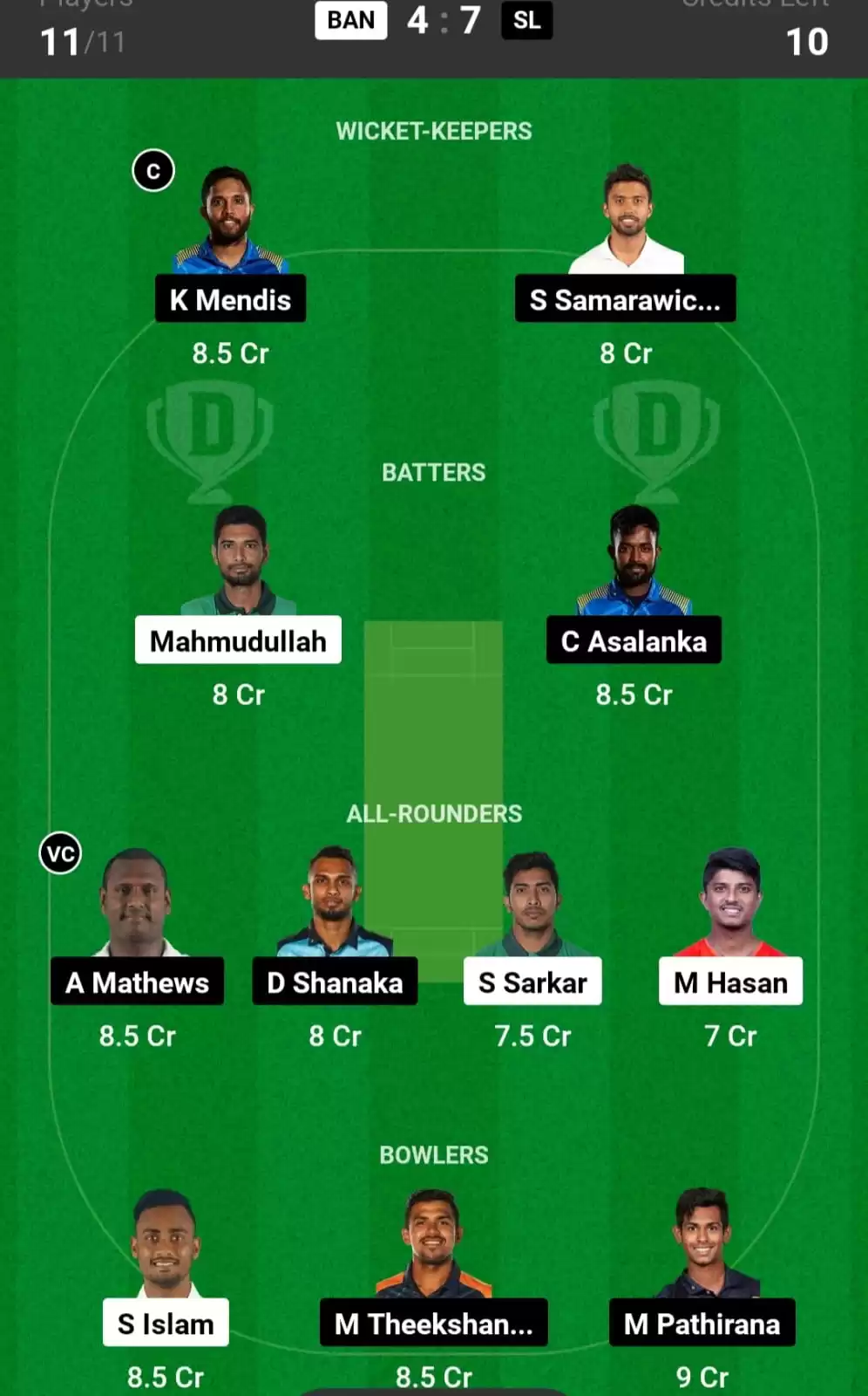 Angelo Mathews and Kusal Mendis will be the top hot picks for Captain and Vice Captain selection for your dream11 fantasy team