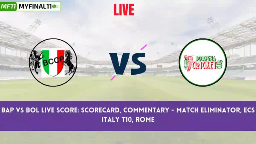 BAP vs BOL Live Cricket Score — The Baracca Prato (BAP) vs Bologna Cricket Club (BOL) Eliminator in the ECS Italy T10 Rome 2024 is set for August 23, 2024 12:30 PM IST, at Roma Cricket Ground.
