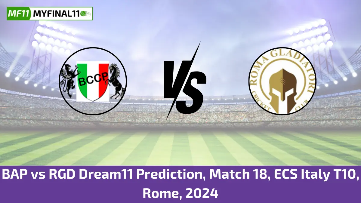 The Match 18 of ECS Italy T10, Rome will feature Baracca Prato (BAP) vs Roma Gladiatori (RGD) at Roma Cricket Ground, on August 15, 2024, at 4:30 PM IST. Read our in-depth, complete BAP vs RGD Dream11 prediction to get today’s best fantasy cricket tips.