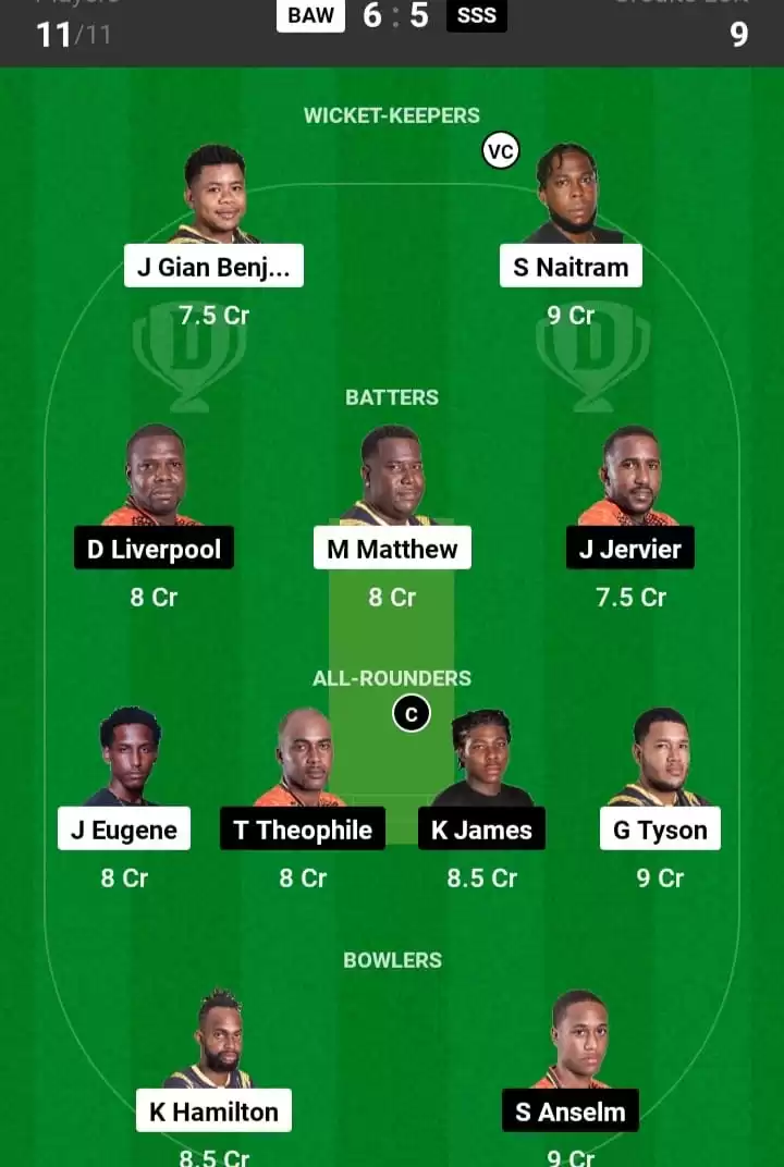 BAW vs SSS Dream11 Prediction Today Match BAW vs SSS Dream11 Team Prediction BAW vs SSS Player Stats 6th Match of the Nature Isle T10 2023 on the 11th of December 2023. The fixture will be hosted at Windsor Park, Roseau at 12:00 AM IST. if you are looking for a BAW vs SSS Dream11 today dream11 prediction then you are in the right place.