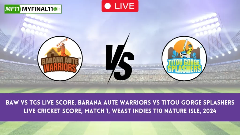BAW vs TGS Live Score: The upcoming match between Barana Aute Warriors (BAW) vs Titou Gorge Splashers (TGS) at the West Indies T10 Nature Isle, 2024 tournament is expected to be thrilling. The BAW vs TGS match will be held on June 23, 2024, at Windsor Park, Roseau. It will start at 9:30 PM IST. Cricket fans can follow the BAW vs TGS live cricket score, scorecard, and ball-by-ball match commentary on myfinal11. Live streaming for this match is available on the Fancode app/website.