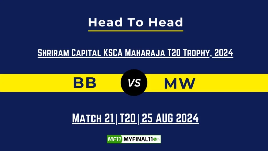 Get all the BB vs MW player battles, BB vs MW Stats, records, and head-to-head between Bengaluru Blasters and Mysore Warriors.