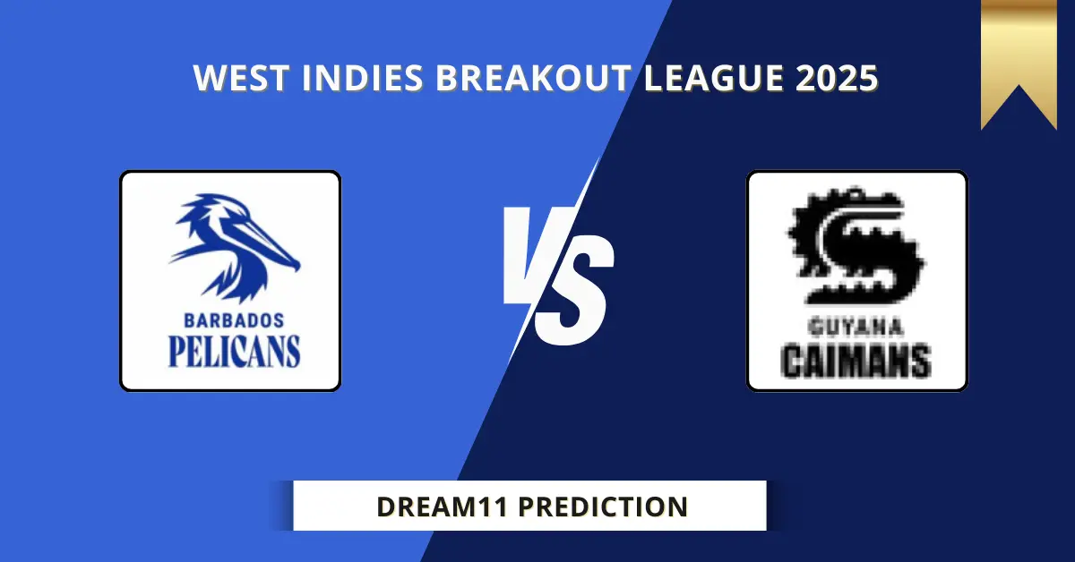 BBP vs GRR Dream11 prediction – Get ready for an exciting clash as Barbados Pelicans (BBP) take on Guyana Rainforest Rangers (GRR) in Match 13 of the West Indies Breakout League 2025. The match is scheduled at Brian Lara Stadium on May 6, 2025, 11:30 PM IST.