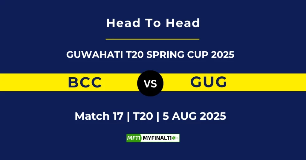 BCC vs GUG Player Battle, Head-to-Head Team Stats & Records and more: Today in Guwahati T20 Spring Cup (2025), Bud CC (BCC) will take on Guwahati Giants (GUG) at Judges Field, Guwahati, on 5th August 2025 at 9:00 AM.