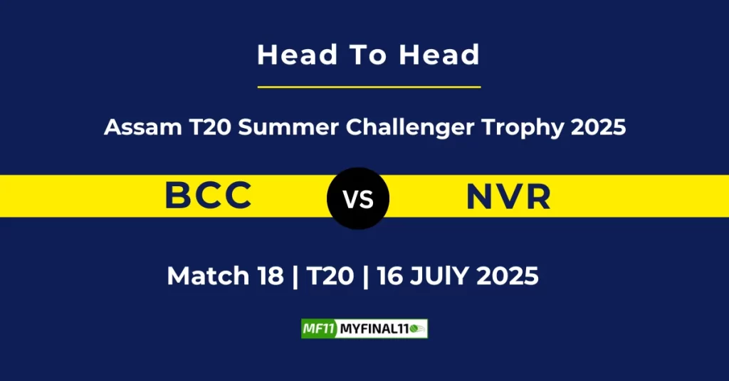 BCC vs NVR Player Battle, Head-to-Head Team Stats & Records and more: Today in Assam T20 Summer Challenger Trophy (2025), Bud CC (BCC) will take on Nabarang Club (NVR) at Judges Field, Guwahati, on 16th July 2025 at 1:30 PM.