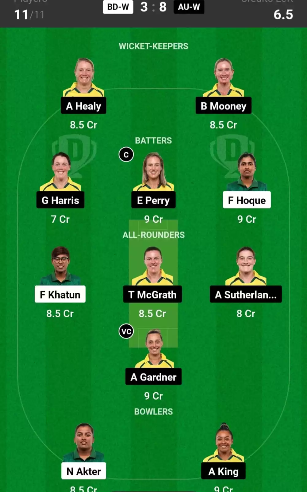 It is good to have a maximum no. of Australia Women Batters and bowlers in your fantasy team that will help you score more fantasy points