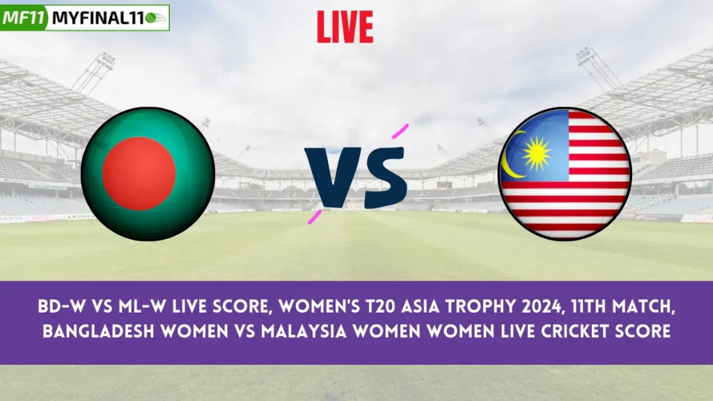 Get live score updates for the BD-W vs ML-W match as Bangladesh Women (BD-W) takes on Malaysia Women (ML-W) in the 11th Women’s T20 Asia Trophy 2024 match. Follow the live score and ball-by-ball commentary here.
