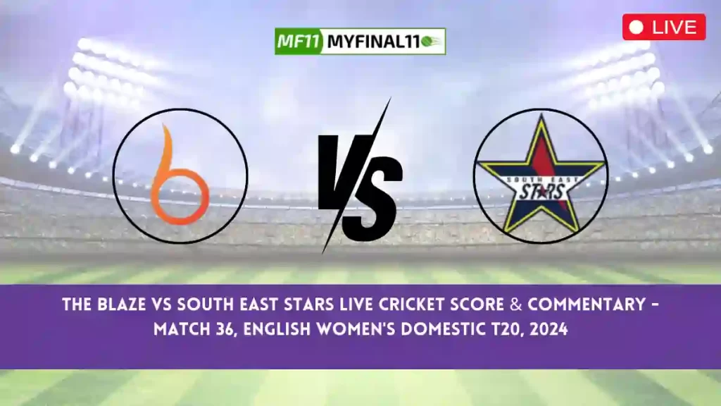 Get live score updates for the BLA vs SES match as The Blaze (BLA) takes on South East Stars (SES) in the 36th English Women’s Domestic T20 2024 match. Follow the live score and ball-by-ball commentary here. The match will begin on June 16th, 2024, at 04:30 PM IST and will be hosted at County Ground, Derby. Live Streaming of this match is available on the Fancode, and for BLA vs SES Live Cricket scorecard ball-by-ball commentary, Visit Here.