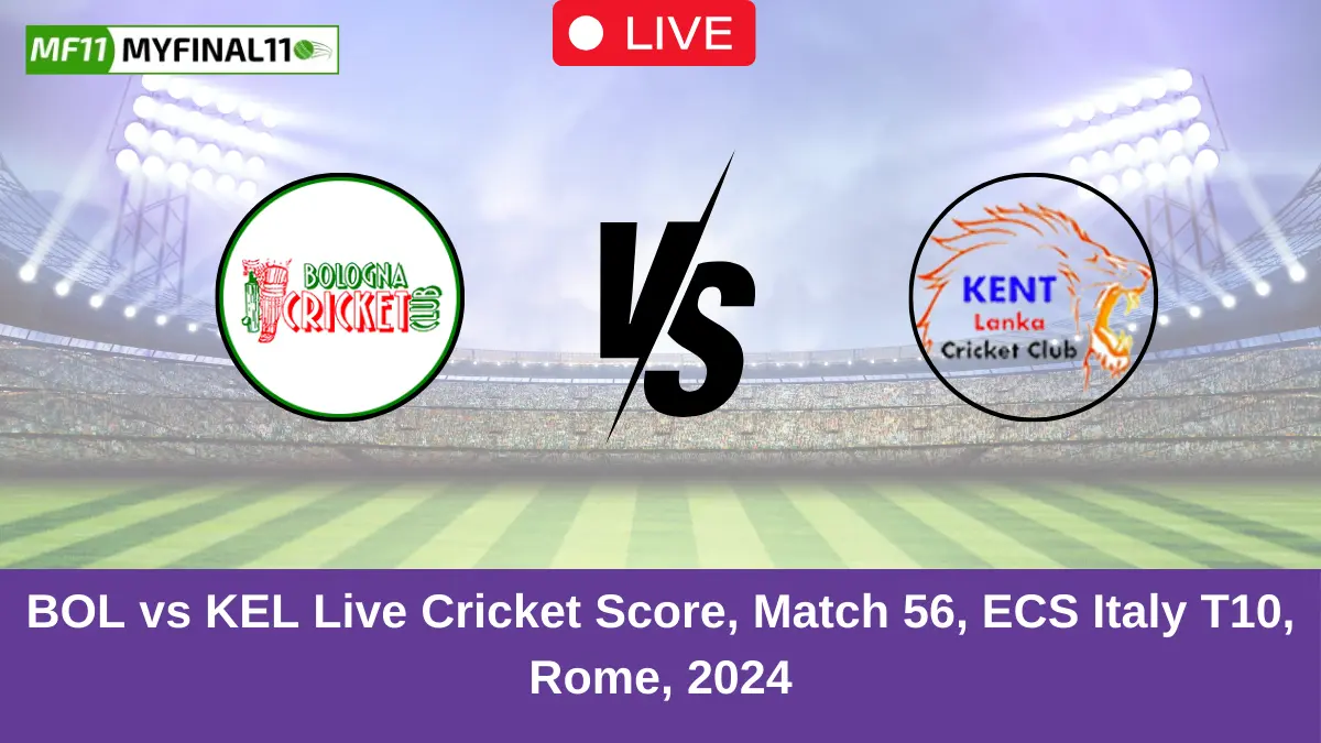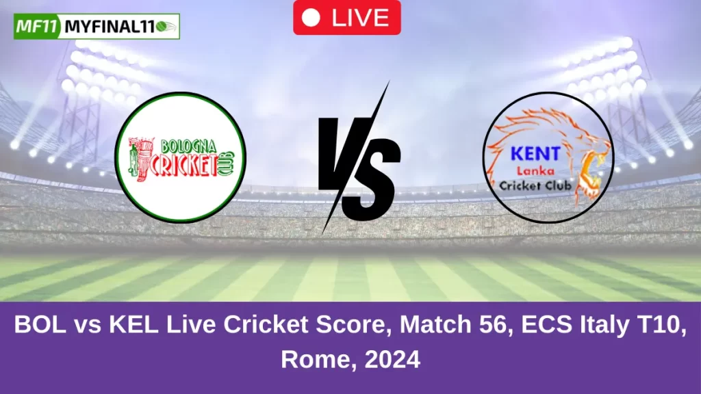 BOL vs KEL Live Cricket Score — The Bologna Cricket Club (BOL) vs Kent Lanka Cricket Club (KEL) Match 56 in the ECS Italy T10, Rome 2024, is set for August 22, 2024, 8:30 PM IST, at Roma Cricket Ground.