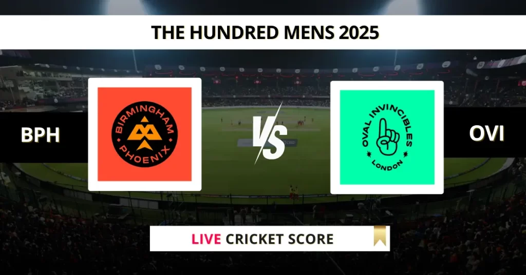 Get Live Score update of BPH vs OVI: Track the live match updates, scorecard, and key moments from Match 10 of The Hundred Mens 2025 happening at Edgbaston today, August 12, 2025, 11:00 PM IST.
