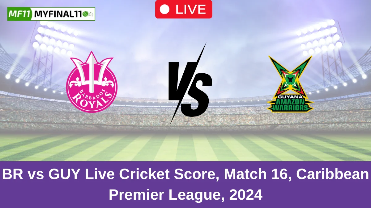 BR vs GUY Live Cricket Score — The Barbados Royals (BR) vs Guyana Amazon Warriors (GUY) Match 16 in the Republic Bank CPL T20 is set for September 15, 2024, 4:30 AM IST, at Kensington Oval, Bridgetown.
