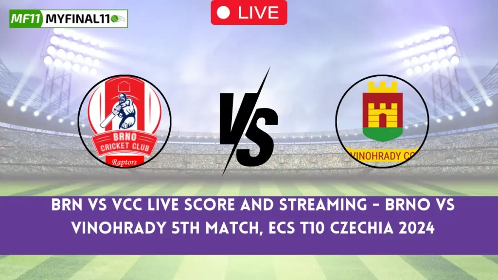 Today’s ECS T10 Czechia match will be played between Brno (BRN) and Vinohrady (VCC). The BRN vs VCC Live match will be held on June 17, 2024, at Scott Page Field, Vinor, Prague. It will start at 6:30 PM IST. Cricket fans can follow the BRN vs VCC live cricket score, scorecard, and ball-by-ball match commentary on myfinal11. Live streaming for this match is available on the Fancode app/website.