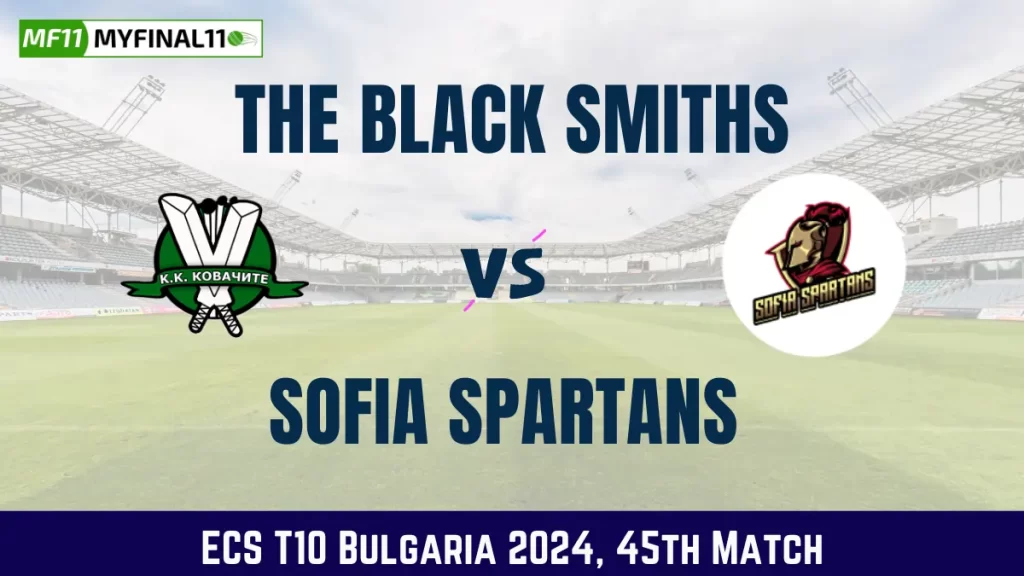 The 45th match of the ECS T10 Bulgaria 2024 will be between The Black Smiths (BS) and Sofia Spartans (BCCS) at National Sports Academy Vasil Levski, Sofia on 6th Aug 2024 at 05:00 PM IST.
