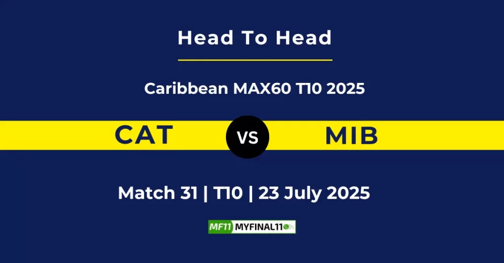 CAT vs MIB Player Battle, Head-to-Head Team Stats & Records and more: Today in Caribbean MAX60 T10 (2025), Caribbean Tigers (CAT) will take on Miami Blaze (MIB) at JImmy Powell Oval, George Town, on 23rd July 2025 at 12:45 AM.