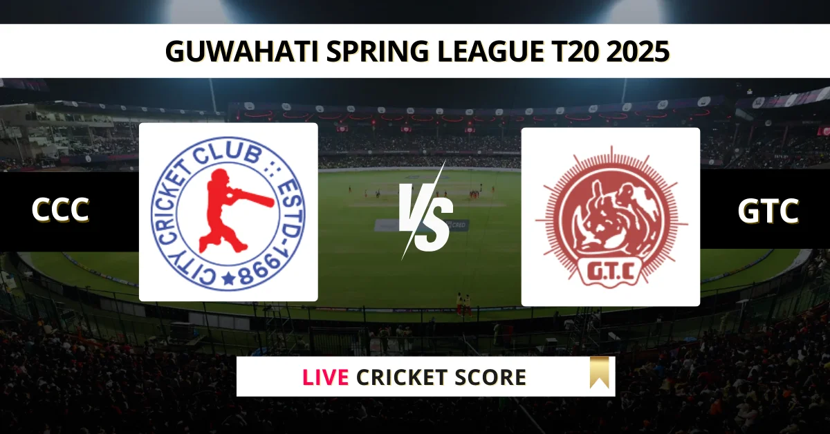 CCC vs GTC Live Cricket Score — The City Cricket Club (CCC) vs Gauhati Town Club (GTC) Match 29 in the Guwahati T20 Spring League 2025 2025 is set for May 1, 2025, 9:00 AM IST, at Judges Field.