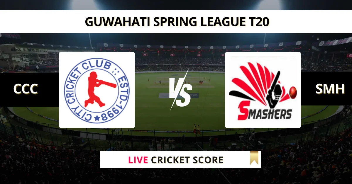 CCC vs SMH Live Cricket Score — The City Cricket Club (CCC) vs Smashers (SMH) Match 17 in the Guwahati T20 Spring League 2025 is set for April 25, 2025, 9:00 AM IST, at Judges Field, Guwahati.