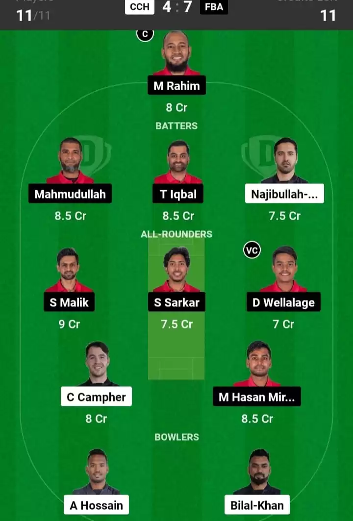 CCH vs FBA Prediction Fantasy Expert Cricket Team: Bangladesh Premier League 2024