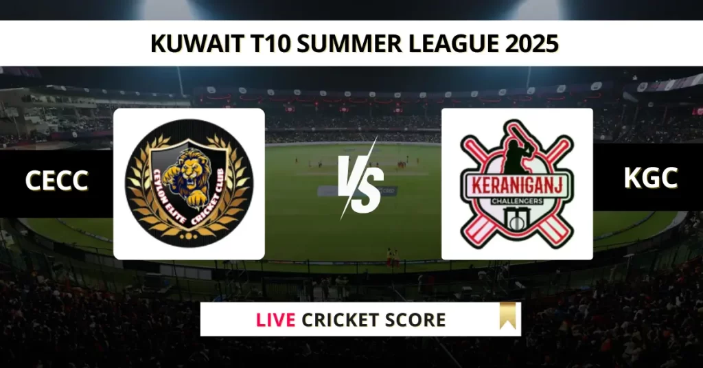 Catch the excitement of the Kuwait T10 Summer League 2025 as CECC faces off against KGC in Match 26 Get live score updates, match stats, and commentary straight from Sulaibiya Cricket Ground on August 14, 2025, 10:15 PM IST.