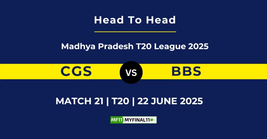 CGS vs BBS Player Battle, Head-to-Head Team Stats & Records and more: Today in Madhya Pradesh T20 League (2025), Chamble Ghariyals (CGS) will take on Bundelkhand Bulls (BBS) at Shrimant Madhavrao Scindia Cricket Stadium, Gwalior, on 22nd June 2025 at 7:30 PM.