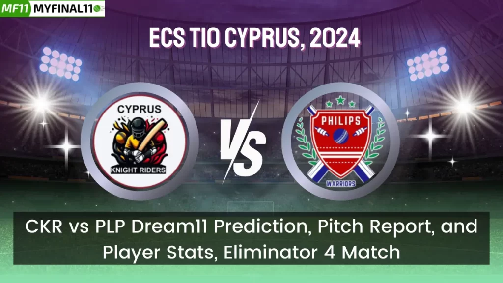 The Eliminator 4 match of the ECS T10 Cyprus 2024 will be between Cyprus Knight Riders (CKR ) and Philips Warrior (PLP ) at Ypsonas Cricket Ground, Limassol on 12th June 2024 at 04:30 PM IST. If you are interested, you can find more information about the CKR vs PLP Dream11 Prediction Today Match, CKR vs PLP Dream11 Team Today, Playing 11, and Pitch Report & CKR vs PLP Player Stats in this article.