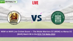 MSW vs MAR Live Cricket Score — The Msida Warriors CC (MSW) vs Marsa CC (MAR) Match 86…