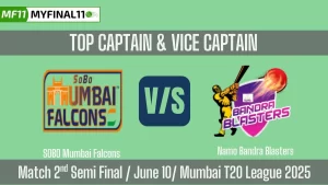 SBMF vs BB Top 3 Captain and Vice-Captain picks for 2nd Semi Final Match - Mumbai T20 League…