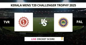 TVR vs PAL Live Cricket Score — The DCA Trivandrum (TVR) vs DCA Palakkad (PAL) Match 20 in…