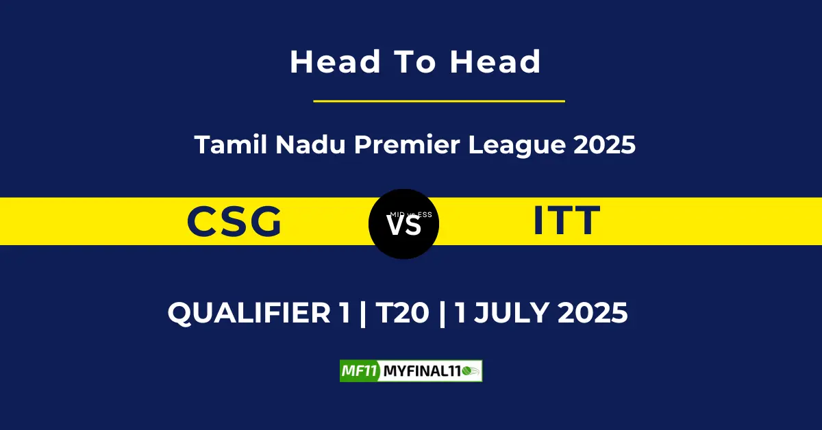 CSG vs ITT Player Battle, Head-to-Head Team Stats & Records and more: Today in Tamil Nadu Premier League (2025), Chepauk Super Gillies (CSG) will take on IDream Tiruppur Tamizhans (ITT) at NPR College Ground, Dindigul, on 1st July 2025 at 7:15 PM.