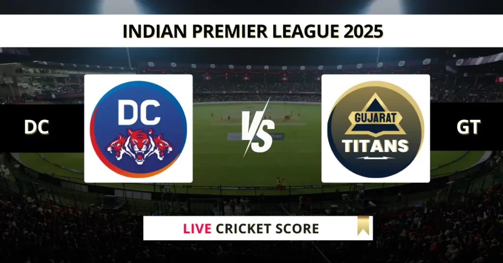 DC vs GT Live Cricket Score — The Delhi Capitals (DC) vs Gujarat Titans (GT) Match 60 in the Indian Premier League 2025 is set for May 18, 2025 7:30 PM IST, at Arun Jaitley Stadium.
