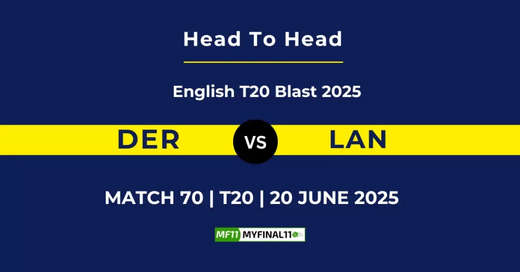DER vs LAN Player Battle, Head-to-Head Team Stats & Records and more: Today in English T20 Blast (2025), Derbyshire (DER) will take on Lancashire (LAN) at County Ground, Derby, on 20th June 2025 at 11:00 PM.
