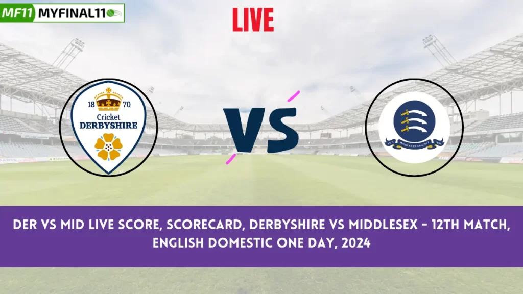 DER vs MID Live Score — The Derbyshire vs Middlesex match in the English Domestic One Day 2024 is set for July 27, 2024, at 03:30 PM IST at County Ground, Derby.