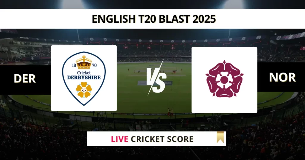 DER vs NOR Live Cricket Score — The Derbyshire (DER) vs Northamptonshire (NOR) Match 18 in the Vitality Blast 2025 is set for June 4, 2025, 11:30 PM IST, at County Ground.