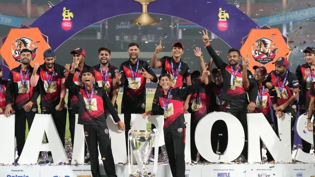 East Delhi Riders made history by winning the first-ever Delhi Premier League (DPL) T20 title. In a thrilling final at Arun Jaitley Stadium, they defeated South Delhi Superstars by just 3 runs. The star of the match was Mayank Rawat, who played a crucial knock of 78 not out, smashing 7 fours and 6 sixes. His brilliant batting helped East Delhi post a total of 183/5. Simarjeet Singh and Raunak Vaghela shone with the ball, both taking 3 wickets each to secure a close victory.