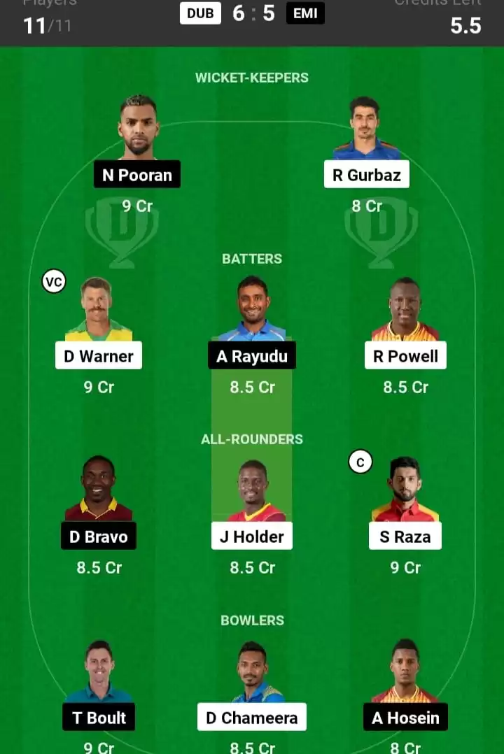 DUB vs EMI Prediction Fantasy Expert Cricket Team: International League T20 2024