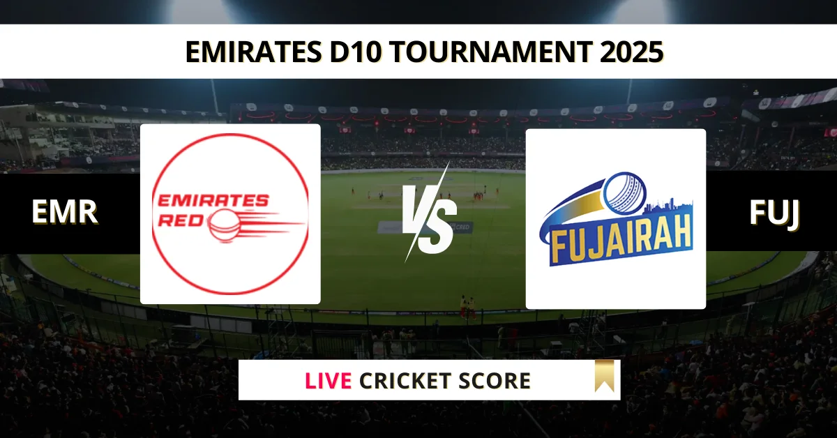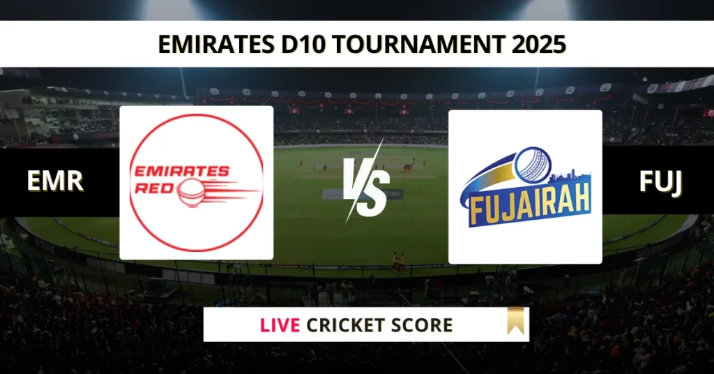 EMR vs FUJ Live Cricket Score — The Emirates Red (EMR) vs Fujairah (FUJ) Match 1 in the Emirates D10 Tournament 2025 is set for May 12, 2025, 4:00 PM IST, at Sharjah Cricket Stadium.