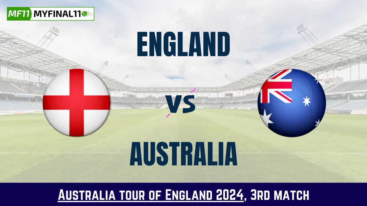 3rd T20I Match of Australia tour of England 2024 will feature England (ENG) vs Australia (AUS) at Old Trafford, on September 15, 2024, 7:00 PM IST. Read our in-depth, complete ENG vs AUS Dream11 prediction to get today’s best fantasy cricket tips.